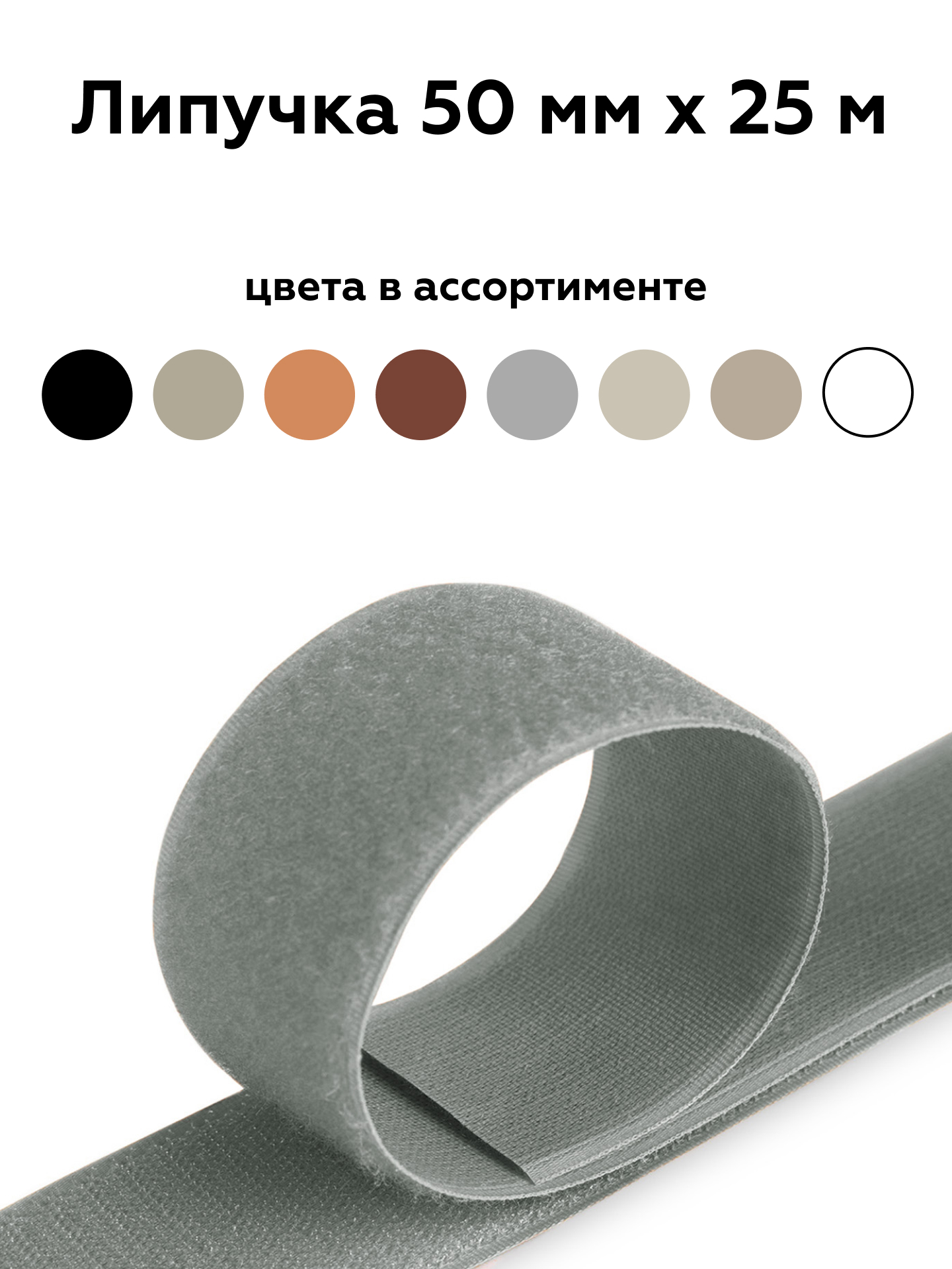 Липучка 50 мм серый 102