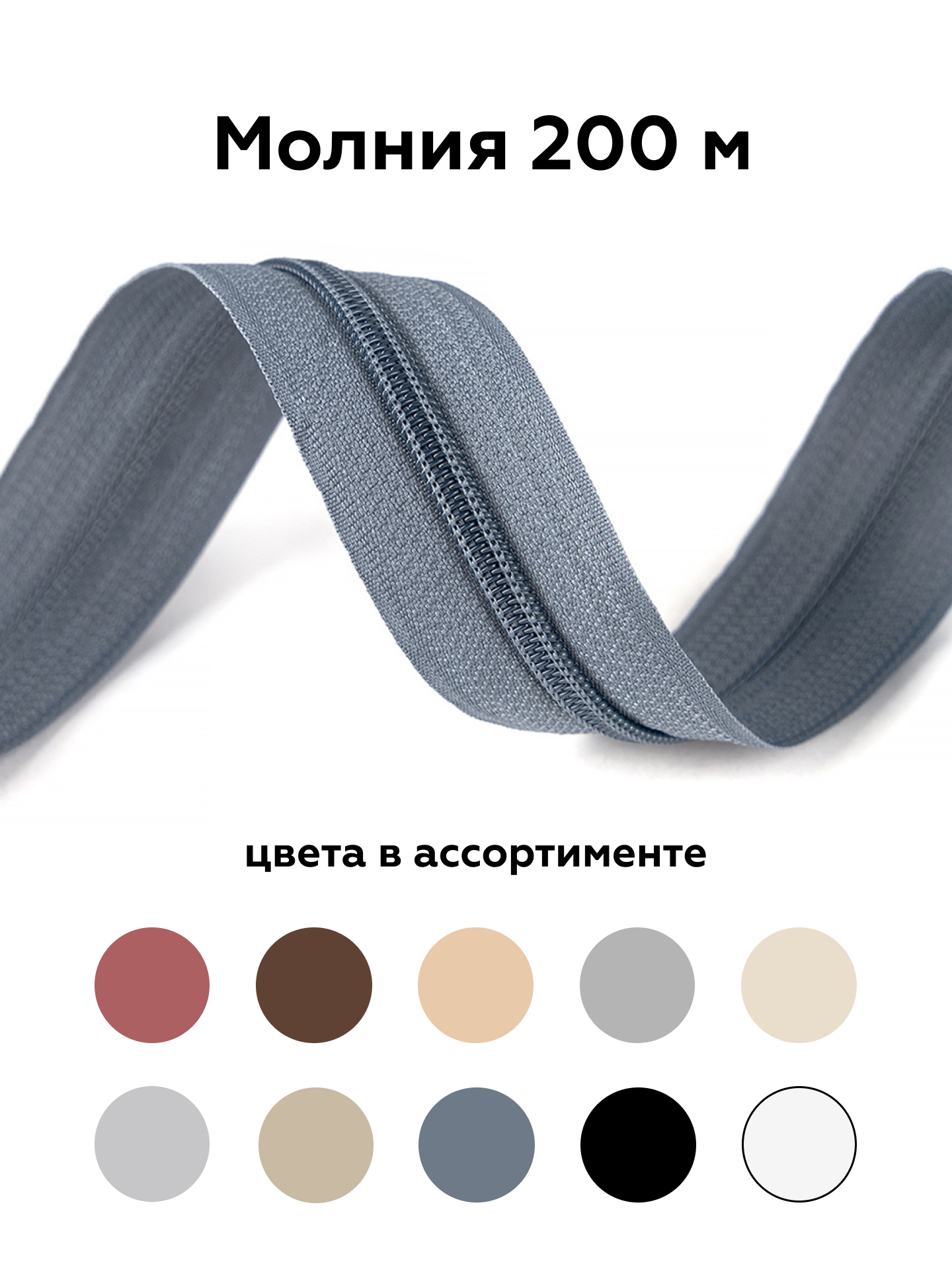 В наш постоянный ассортимент входят витые молнии Т-5 различных цветов с замками в цвет молнии или цвета никель, хром.
