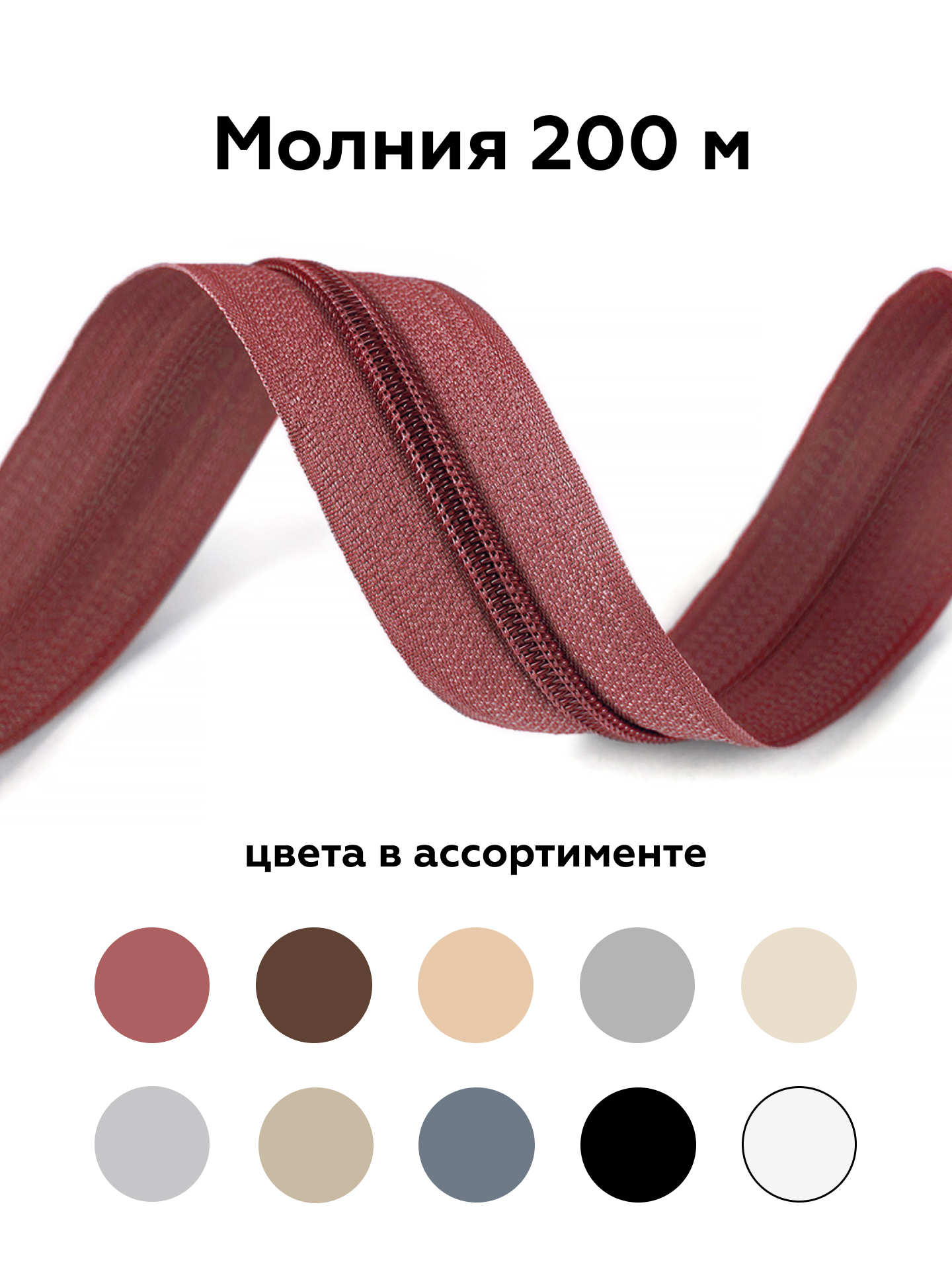 В наш постоянный ассортимент входят витые молнии Т-5 различных цветов с замками в цвет молнии или цвета никель, хром.